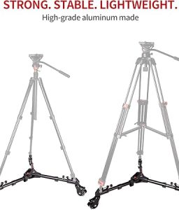 • Photography Tripod Dolly, Heavy Duty with Larger 3-inch Rubber Wheels, Adjustable Leg Mounts and Carry Bag, Compatible with Most Tripods Perfect for Cameras Camcorder and Lighting Equipment Black