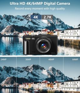 Digital Camera for Photography, 4K Vlogging Camera for YouTube 3″ 180° Flip Screen 18X Digital Zoom Compact Retro Cameras with 32GB TF Card & 2 Batteries, Black