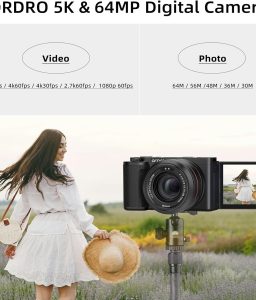 ORDRO G730 5K Mirrorless Camera 12x Optical Zoom, 3.2″ Vari-Angle Touchscreen, Auto/Manual Focus for Vlogging and Photography